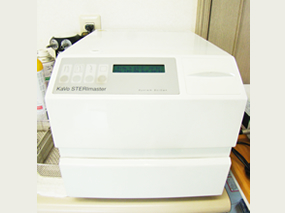 - 歯を削るタービンやエンジン専用の滅菌器です。滅菌時間6分の超スピード型で患者さんが安心して治療を受けられる体制を整えております。