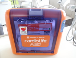 - 歯科衛生士が、1名以上配置されていること。緊急時の初期対応が可能な医療機器(AED、酸素ボンベおよび酸素マスク、血圧計、パルスオキシメーター)を設置していること。